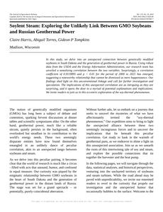 Please make up the introduction section of an academic research paper presenting the findings of the connection between GMO use in soybeans in South Dakota and Geothermal power generated in Russia. Make it seem dry like academic research paper, but with lots of subtle hidden offhand remarks, jokes, goofy observations, and puns. Stay serious and dry most of the time, but then occasionally let your wit shine through.