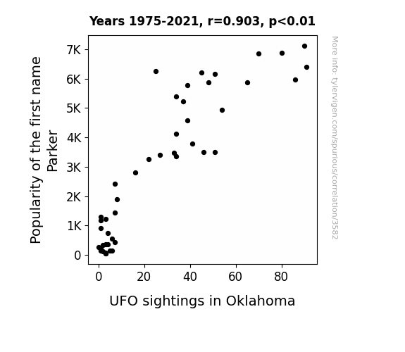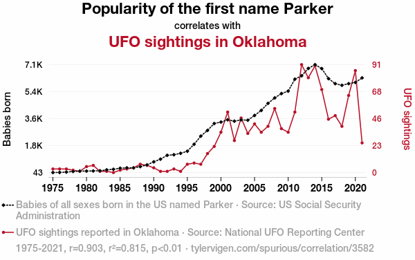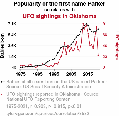 - The spurious research paper: Unveiling the Parker Paradox: Exploring the Connection between Parker Popularity and UFO Sightings in Oklahoma