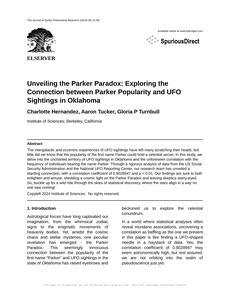 Unveiling the Parker Paradox: Exploring the Connection between Parker Popularity and UFO Sightings in Oklahoma The Journal of Quirky Phenomena Research Jan 2024 Reminder: This paper is AI-generated. Not real! |