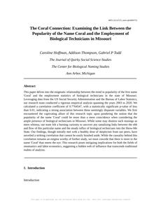 "The Coral Connection: Examining the Link Between the Popularity of the Name Coral and the Employment of Biological Technicians in Missouri"