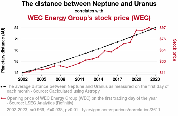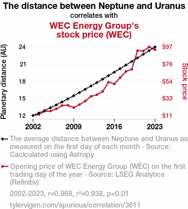 - The spurious research paper: Shocking Findings: The Celestial Dance of Neptune and Uranus and WEC Energy Group's Stock Price