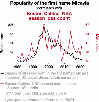 - The spurious research paper: Name Game: The Micayla Effect on the Boston Celtics' NBA Season Loss Count