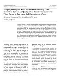 Throughout history, athletes have turned to all manner of superstitions and rituals in pursuit of athletic success: lucky socks, pre-game prayers, and now, it seems, perhaps a deep inhalation of fresh air. In this study, we take a swing at exploring the connection between air quality in San Antonio, Texas and the performance of the Barracuda Golf Championship winners. As air quality continues to be a topic of growing concern, it is curious to consider its potential impact not only on respiratory health but also on the performance of professional golfers.