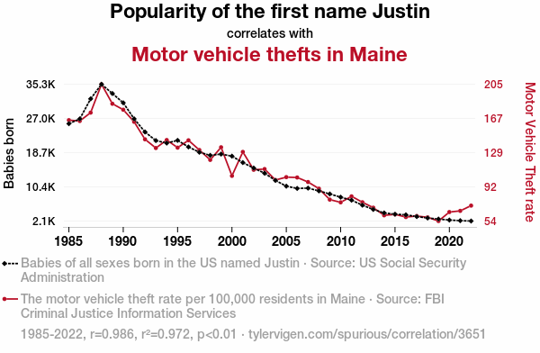 Justin Time: The Surprising Link Between the Popularity of a Name and Motor Vehicle Thefts in Maine