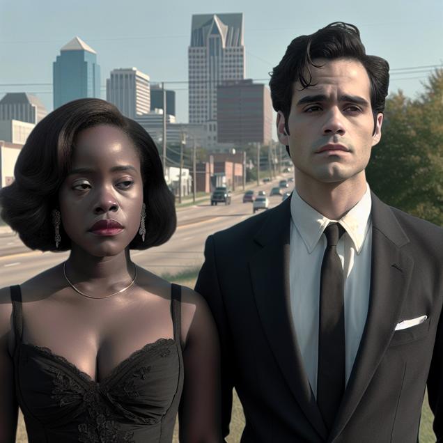 Prompt: Prompt: Create an image with a humorous twist on the scene in Memphis where couples see each other clearly for the first time due to improved air quality. Show a couple standing face to face, with subtle expressions of regret as they realize the impact of the previously hazy air on their decision to get married. The surroundings should reflect a clear sky and a sense of newfound clarity. The image should capture the irony or humor of the situation, suitable for sharing on Reddit. The depiction should include only scenes, people, and objects, it should not include text or speech bubbles.