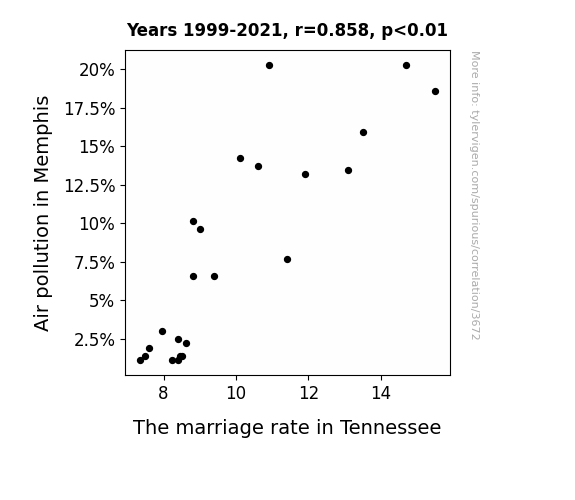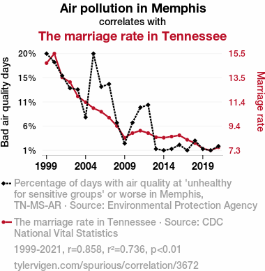 - The spurious research paper: The Dirty Truth: Air Pollution in Memphis and the Marital Mess in Tennessee