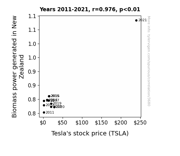 - The spurious research paper: Sparking Interest: The Renewable Connection Between Biomass Power Generation in New Zealand and Tesla's Stock Price