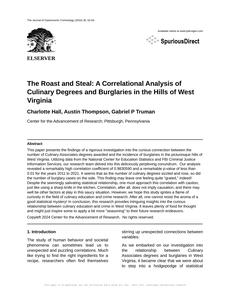 The Roast and Steal: A Correlational Analysis of Culinary Degrees and Burglaries in the Hills of West Virginia The Journal of Gastronomic Criminology Jan 2024 Reminder: This paper is AI-generated. Not real! |