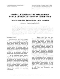 Taking a Breather: The Atmospheric Impact on Triplet Totals in Pittsburgh The Journal of Quirky Atmospheric Studies Jan 2024 Reminder: This paper is AI-generated. Not real! |