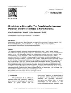 Breathless in Greenville: The Correlation between Air Pollution and Divorce Rates in North Carolina Journal of Ecological Sociology Jan 2024 Reminder: This paper is AI-generated. Not real! |