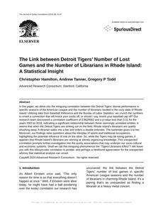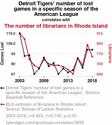 - The spurious research paper: The Link between Detroit Tigers’ Number of Lost Games and the Number of Librarians in Rhode Island: A Statistical Insight