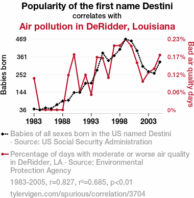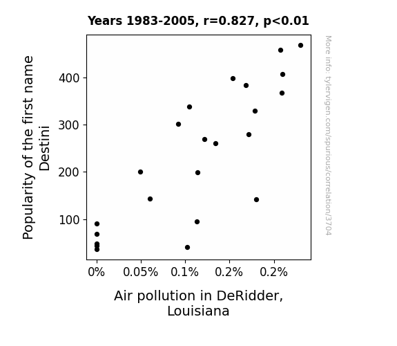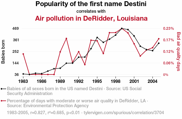 - The spurious research paper: Destini Calling: The Correlation Between Popularity of the First Name Destini and Air Pollution in DeRidder, Louisiana