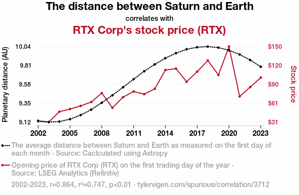 - The spurious research paper: Planetary Play: Saturn's Distance and RTX Stock Dance