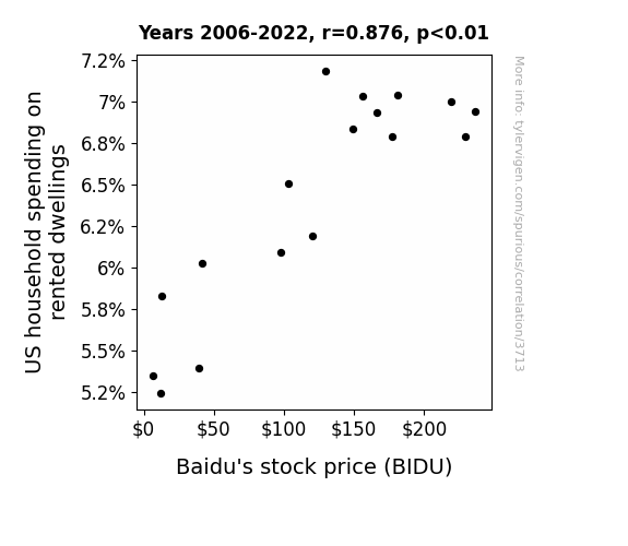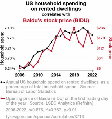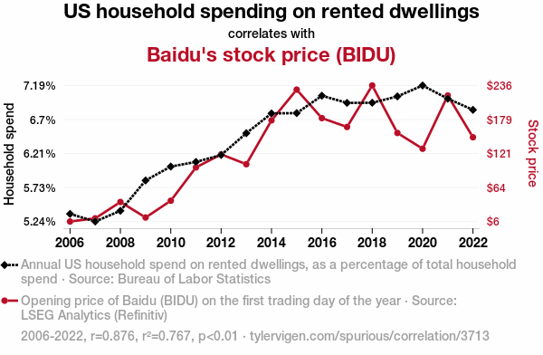 - The spurious research paper: The Baffling BIDU and Dwelling Dilemma: Bridging the Bosom of Baidu's Stock Price to US Household Spending on Rented Dwellings