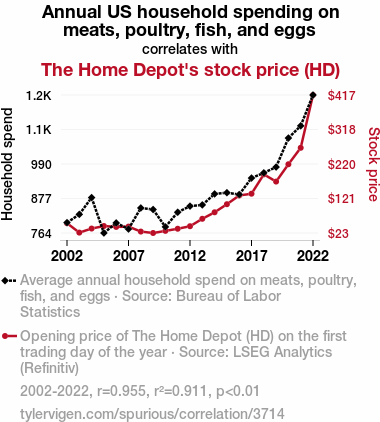 - The spurious research paper: Meating Demands: The Correlation Between Household Spending on Animal Products and The Home Depot's Stock Price