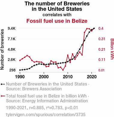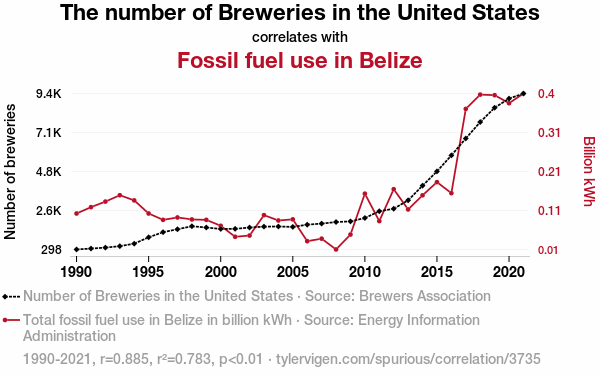 - The spurious research paper: Ale-ing Economies: An Analysis of the Relationship Between Brewery Boom in the United States and Fossil Fuel Use in Belize