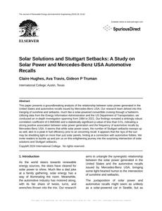 Solar Solutions and Stuttgart Setbacks: A Study on Solar Power and Mercedes-Benz USA Automotive Recalls