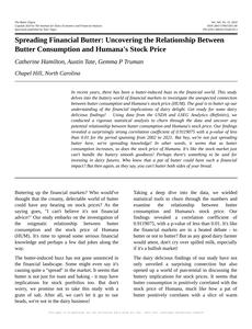 User prompt: Please provide potential search keywords for a paper titled Spreading Financial Butter: Uncovering the Relationship Between Butter Consumption and Humana's Stock Price with an abstract of In recent years, there has been a butter-induced buzz in the financial world. This study delves into the buttery world of financial markets to investigate the unexpected connection between butter consumption and Humana's stock price (HUM). The goal is to butter up our understanding of the financial implications of dairy delight. Get ready for some dairy delicious findings!