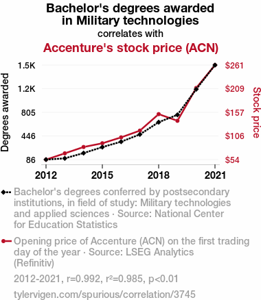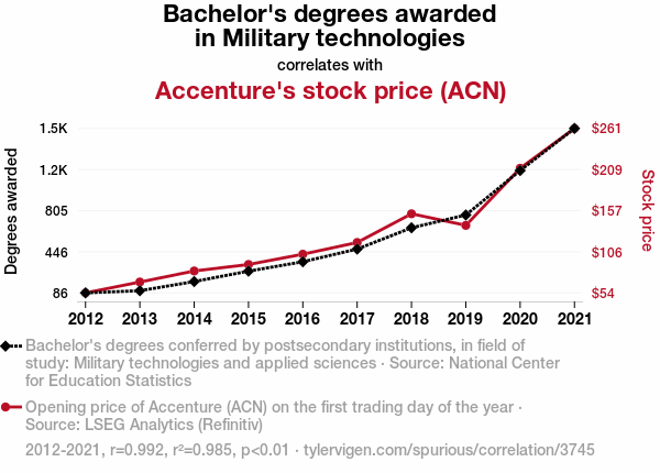- The spurious research paper: Marching to the Market: The Battle of Bachelor's Degrees in Military Technologies and Accenture's ACN Stock Price