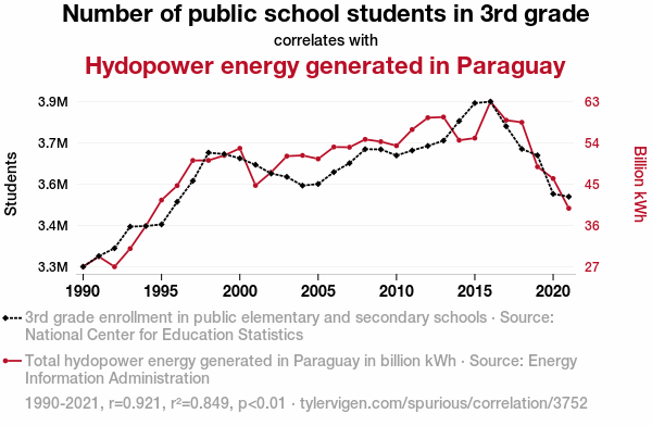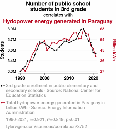 User prompt: Please provide potential search keywords for a paper titled Perplexing Parallels: Pupils and Power in Paraguay with an abstract of In this research paper, we delve into the delightful dance between the number of public school students in 3rd grade and the hydropower energy generated in Paraguay. Our team extracted data from the National Center for Education Statistics and the Energy Information Administration to embark on this captivating quest. Employing statistical analysis, we uncovered a striking correlation coefficient of 0.9213313 and a significant p-value of less than 0.01 for the period spanning from 1990 to 2021. Our findings not only raise eyebrows but also prompt further investigation into the quirky, yet captivating, relationship between education and energy in the land of stunning waterfalls and power plants.