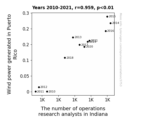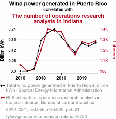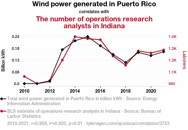 - The spurious research paper: Blown Away: Uncovering the Winds of Change in the Relationship Between Wind Power in Puerto Rico and Operations Research Analysts in Indiana