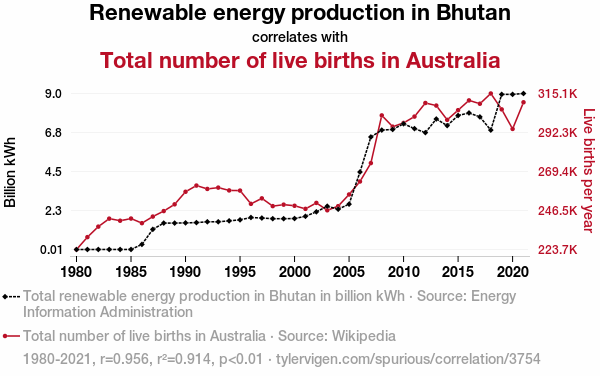 - The spurious research paper: Shocking Connections: Renewable Energy from the Land of the Thunder Dragon and a Baby Boom Down Under