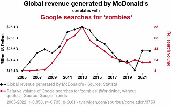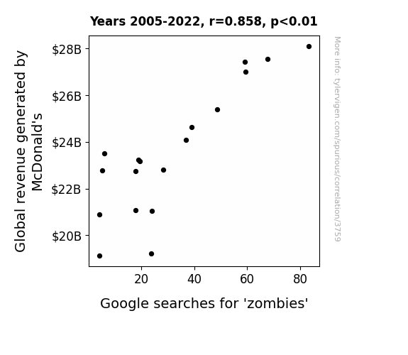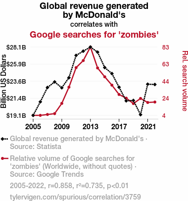 - The spurious research paper: Flipping the Golden Arches: A McZombie Connection between Global Revenue and Google Searches