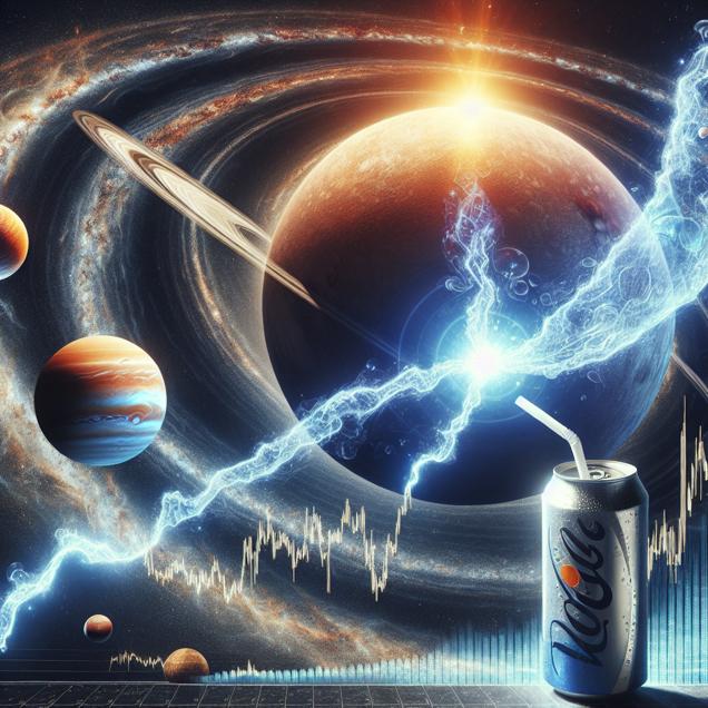 ChatGPT: Create a hyper-realistic visual of the solar system, with Neptune and Uranus positioned in their usual orbits. However, depict a powerful surge of energy radiating from the space between the two planets, distorting the cosmic landscape. Meanwhile, display a stock price chart for Diageo (DEO) in the foreground, clearly showing a consistent upward trend. Capture the juxtaposition of the celestial disturbance and the earthly financial success with exquisite detail, emphasizing the interplay of cosmic forces and economic phenomena.