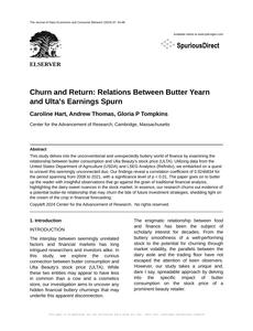 Churn and Return: Relations Between Butter Yearn and Ulta's Earnings Spurn The Journal of Dairy Economics and Consumer Behavior Jan 2024 Reminder: This paper is AI-generated. Not real! |