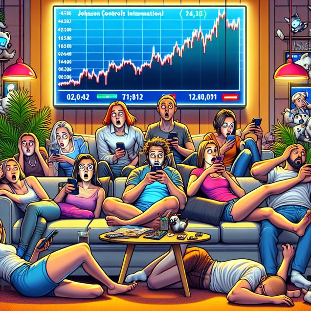 ChatGPT: An amusing image that you would see on Reddit: A group of people are sitting on their couches, each typing "my cat scratched me" into their Google search bar on their devices. As they receive search results, they exchange bewildered glances. Meanwhile, in the background, a stock ticker shows Johnson Controls International's (JCI) stock price steadily rising, symbolizing the newfound respect for control and authority as people start investing in the company. Enhanced visual depiction: Show a living room with multiple people sitting on couches, facing a central coffee table. Each person is holding a device and typing on their phones or laptops. Their facial expressions reveal confusion or surprise as they look at their screens. In the background, a large TV screen or digital display shows a stock ticker scrolling, prominently displaying the rising stock price of Johnson Controls International. The overall setting should depict a casual, comfortable living space, capturing the humor and irony of the situation.