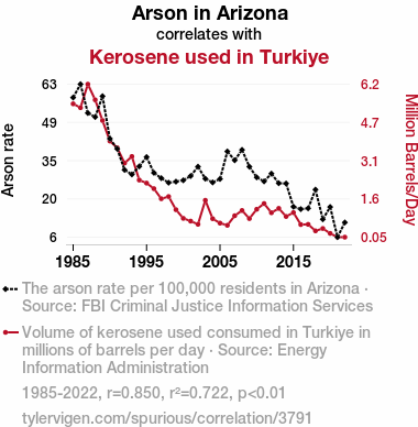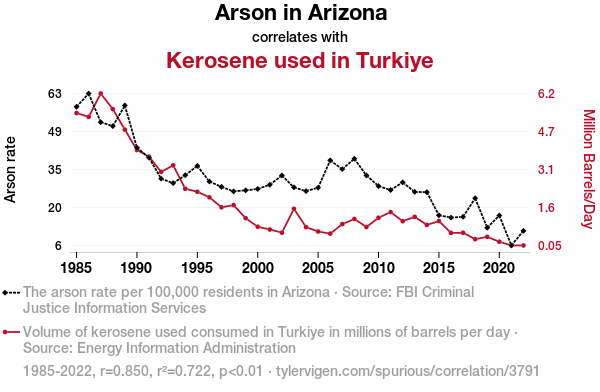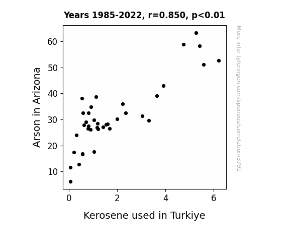 - The spurious research paper: Burnin' Love: A Fiery Connection Between Arson in Arizona and Kerosene Consumption in Turkiye