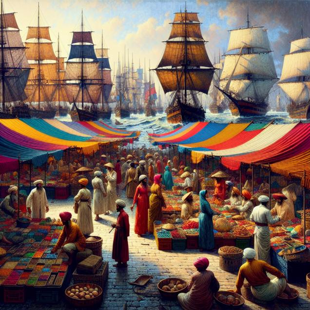 Prompt: Generate an image of the bustling port of District of Columbia, with vibrant merchandise displayers and window trimmers creating a dazzling array of colors and patterns. As passing ship captains navigate the harbor, they are captivated by the mesmerizing displays, leading to an increase in shipwrecks. Capture the chaos and beauty of the port, illustrating the clash between the alluring displays and the dangerous distractions they pose to the passing vessels. The depiction should include only scenes, people, and objects, it should not include text or speech bubbles.