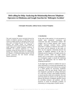 Heli-calling for Help: Analyzing the Relationship Between Telephone Operators in Oklahoma and Google Searches for 'Helicopter Accident' The Journal of Quirky Research Studies Jan 2024 Reminder: This paper is AI-generated. Not real! |