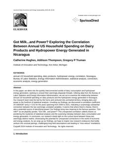Got Milk...and Power? Exploring the Correlation Between Annual US Household Spending on Dairy Products and Hydropower Energy Generated in Nicaragua Journal of Dairy Economics and Energy Sustainability Jan 2024 Reminder: This paper is AI-generated. Not real! |