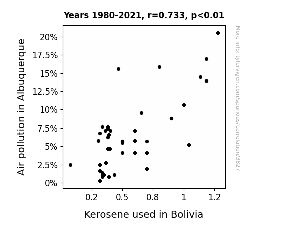- The spurious research paper: In Pursuit of Pollution: The Parallels of Air Quality in Albuquerque and Kerosene Usage in Bolivia