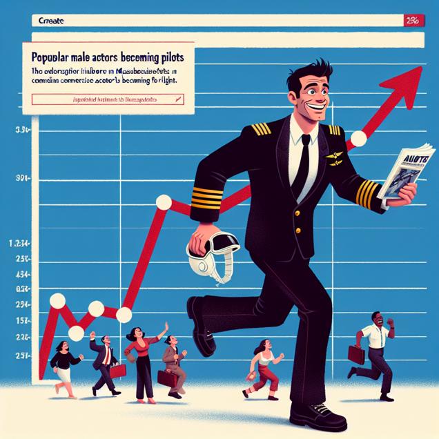 User prompt: Please describe a visual scene that prominently depicts both The number of commercial pilots in Massachusetts and Google searches for 'Nicolas Cage', in the following situation: As the number of commercial pilots in Massachusetts decreased, Nicolas Cage stepped up to fulfill his lifelong dream of becoming a pilot, causing a surge in Google searches for 'Nicolas Cage' as people wondered if he would star in the sequel to Con Air.. Keep the description simple.