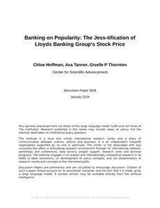 Banking on Popularity: The Jess-tification of Lloyds Banking Group's Stock Price The Journal of Financial Punditry Jan 2024 Reminder: This paper is AI-generated. Not real! |