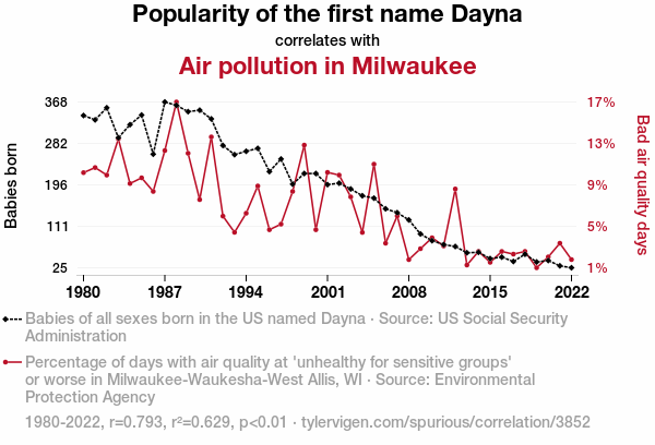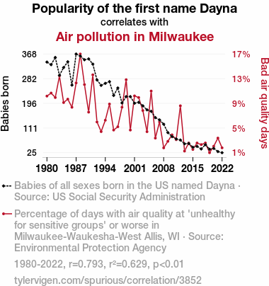 - The spurious research paper: A Breath of Fresh Air: The Dayna Dilemma - Exploring the Relationship Between Name Popularity and Air Pollution in Milwaukee