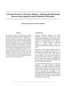 A Breath of Fresh Air: The Dayna Dilemma - Exploring the Relationship Between Name Popularity and Air Pollution in Milwaukee The Journal of Ecological Trends and Nameology Jan 2024 Reminder: This paper is AI-generated. Not real! |