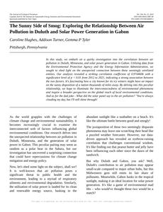 Please draft the title and abstract of an academic research paper presenting the findings of the connection between Air pollution in Duluth and Solar power generated in Gabon. You can't resist a good dad joke. Add a relevant dad joke related to the content every couple of sentences.