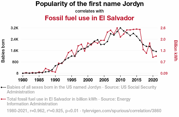 fossil fuel consumption, Jordyn name popularity, El Salvador energy usage, correlation between names and energy consumption, statistical analysis of names and environmental behaviors, social security administration data, energy information administration data, quirky correlations, nomenclature and energy usage, societal phenomena and individual monikers