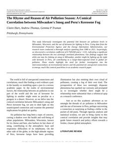 The Rhyme and Reason of Air Pollution Season: A Comical Correlation between Milwaukee's Smog and Peru's Kerosene Fog The Journal of Absurd Atmospheric Analysis Jan 2024 Reminder: This paper is AI-generated. Not real! |