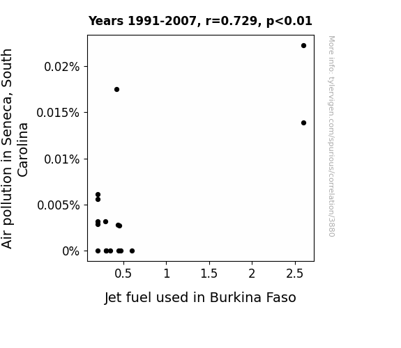 Well, folks, it looks like we've cracked the case of the enigmatic entanglement between air pollution in Seneca, South Carolina, and jet fuel usage in Burkina Faso. It's as remarkable as discovering a unicorn in the wild, but boy, have we uncovered some fascinating findings!