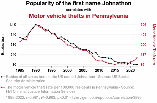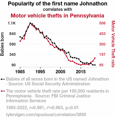 The "Johnathon" Job: An Examination of the Correlation between Popularity of the First Name "Johnathon" and Motor Vehicle Thefts in Pennsylvania