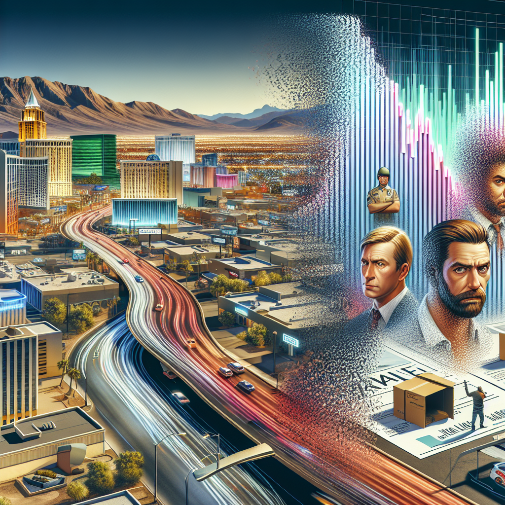 Prompt: [ A photo-realistic image ] Create a scene of a vibrant and bustling cityscape in Nevada, perhaps featuring the recognizable skyline of Las Vegas. Show a graph or visual representation of declining burglary rates juxtaposed with a creative and artistic representation of the name "Daniel" dwindling in popularity. The "Daniel" representation may include fading or disappearing typography or fading images of individuals associated with the name. This juxtaposition visually represents the correlation between the decline of the name "Daniel" and the reduced burglary rates in Nevada. The depiction should include only scenes, people, and objects, it should not include text or speech bubbles.