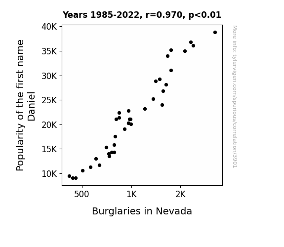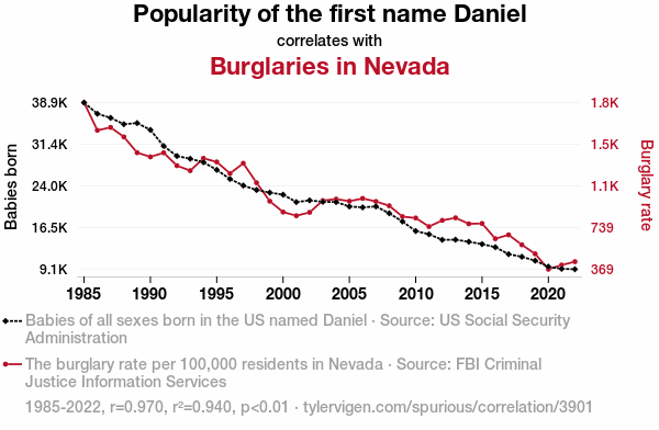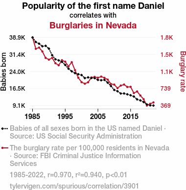 - The spurious research paper: The Daniel Dilemma: A Statistical Study of the Relationship between the Name Daniel and Burglary Incidents in Nevada
