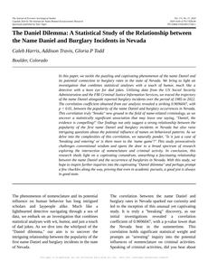 name Daniel, burglary incidents, Nevada, statistical study, correlation coefficient, US Social Security Administration, FBI Criminal Justice Information Services, criminology, behavioral patterns, nomenclature, criminal activity