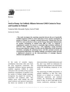 Seed to Pump: An Unlikely Alliance between GMO Cotton in Texas and Gasoline in Finland with an abstract of :
