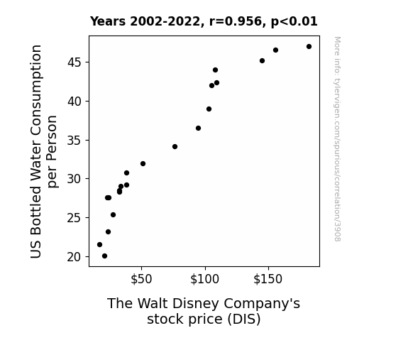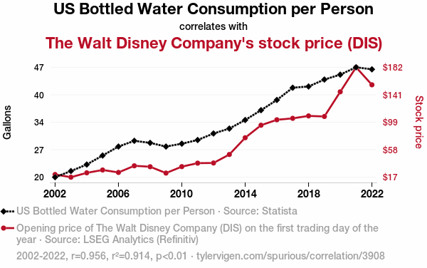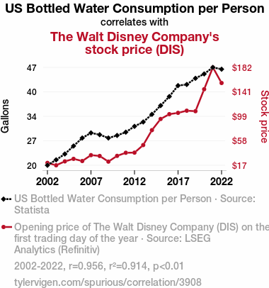 - The spurious research paper: Quenching Thirst, Quenching Stock: An Aquatic Examination of US Bottled Water Consumption and Walt Disney Company's Stock Price