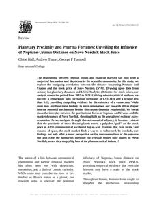 Planetary Proximity and Pharma Fortunes: Unveiling the Influence of Neptune-Uranus Distance on Novo Nordisk Stock Price The Journal of Interplanetary Economics and Finance Jan 2024 Reminder: This paper is AI-generated. Not real! |